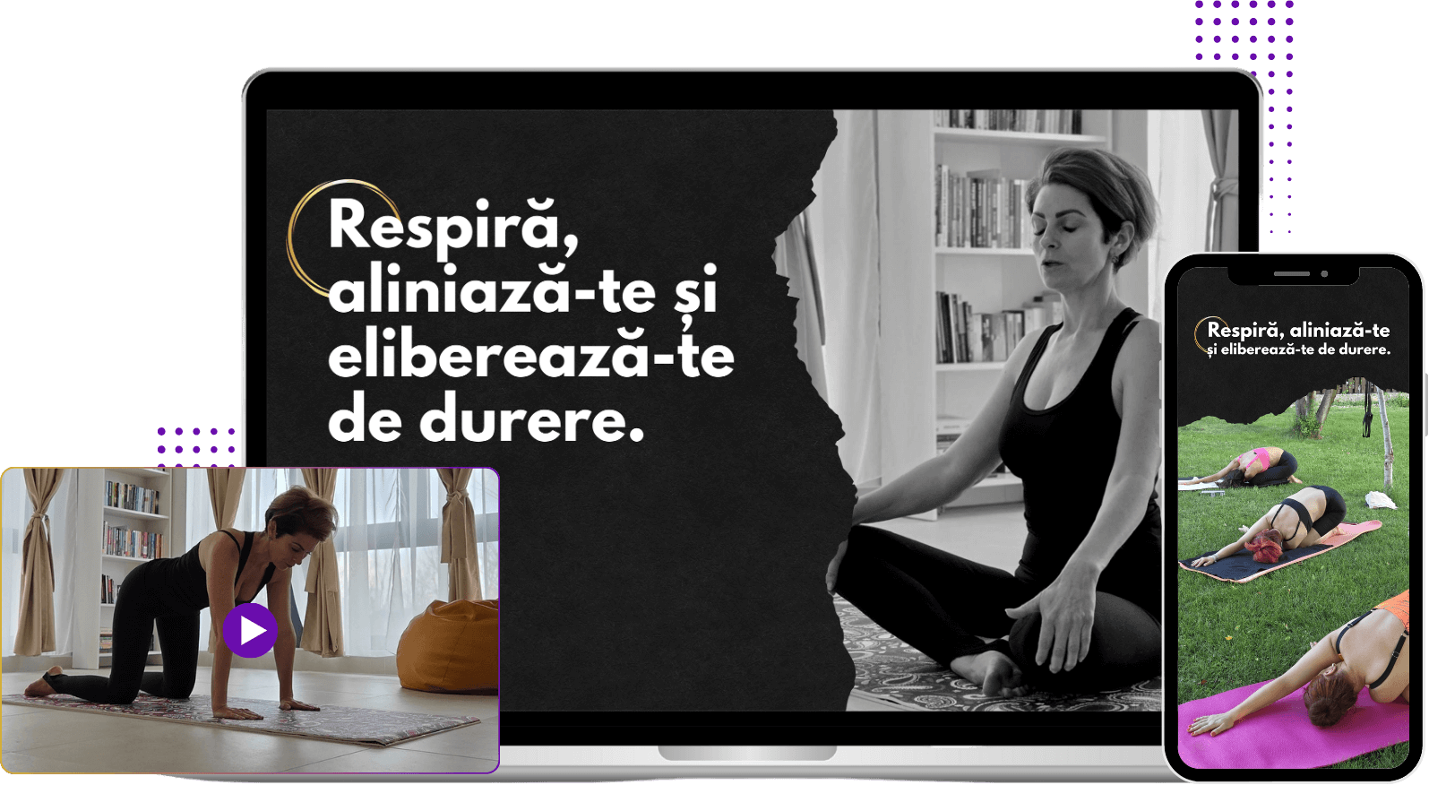 În „Respiră, Aliniază-te și Eliberează-te de Durere”, te ghidez prin practici scurte și blânde care reduc tensiunea, îți deschid postura și te ajută să-ți regăsești energia în ritmul tău.
